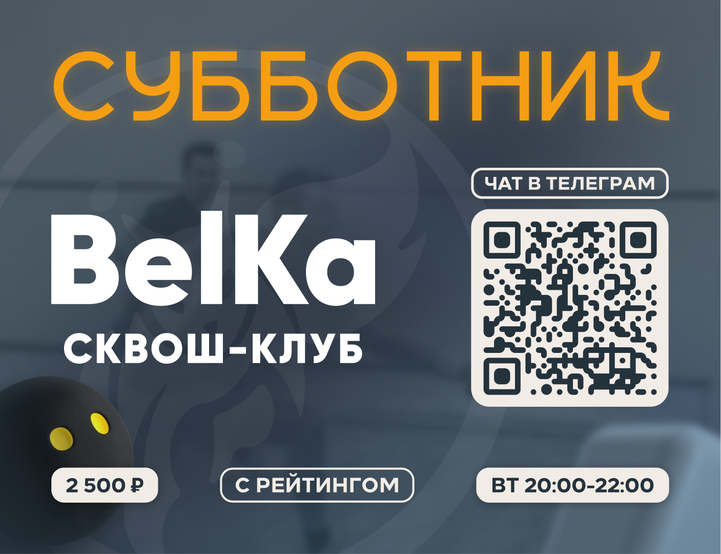 Мы знаем, что игроки хотят играть на разных площадках в общей системе координат (сквозной рейтинг👏), поэтому СУББОТНИК совместно со сквош клубом BelKa запускает игровой день!!